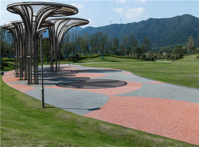 露骨料透水混凝土防止路面积水和夜间路面反光,冬天不会在路面形成黑冰(由霜雾形成的一层几乎看不见的薄冰,危险),提高车辆、行人的通行舒适性与安全性;