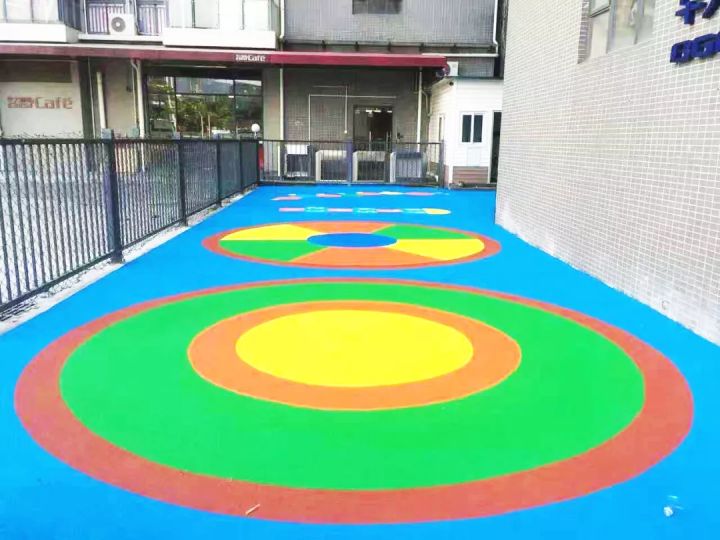 四:表面粉化变白(老化粉化) 表面粉化变白也是由老化引起的(也有可能是橡胶油的问题),这种现象多发生在彩色或杂色回收颗粒上。如果您不慎选用了这种颗粒打底,那么一年以后你的场地就像有白油建以喷溅状洒在场地上一样, 非常难看。