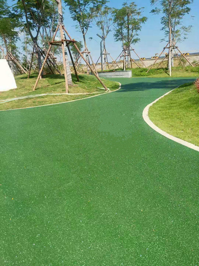 市政步道、园林小路、城市广场、高档住宅小区、停车场、商业广场,商务办公大楼、户外运动场所、自行车道、儿童游乐场地面(羽毛球场馆、篮球场馆等)。使用范围非常的广泛,所有适合使用透水混凝土铺装的场地都可以使用冷铺沥青代替,颜色多样可选,而且可以保证强度能够检测要求。在施工方面,区别于热拌沥青,我们的冷铺沥青不需要加热,不需要事先在沥青搅拌站出料,我们直接就可以在现场拌料,简单方便。这个是双组份的,施工的时候,只需要按比例混合AB组份的沥青胶,再与适量的石子混合搅拌,就能够在施工地面上摊铺,凝固时间很快,初凝时间约半个小时,一个小时就能凝固。一般在8小时后就能够正常通行,所以在市政道路上使用目前是最多的,因为维修起来方便,适合小面积的修补,不需要长时间的封闭道路,影响交通。