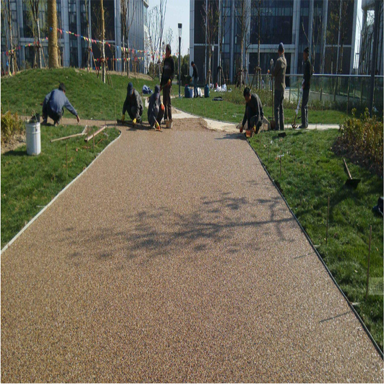 胶粘石地坪路面铺装系统独特的孔隙结构,使得地下温度透入地面,从而降低整个城市地面的温度。生活中越来越多的建筑物剥夺了人们的舒适感,增加了热应力的影响范围,空气质量日趋恶化,各种有毒烟雾在热空气中极易传播,越来越多的有害烟雾导致越来越多的人更容易患上呼吸道**,人们每天都生活在困顿中;建筑材料的密度本身较低(15-25%的空隙)降低了地面热储存的能力,大大增加了患皮肤癌的机率.透水性混凝土铺装系统的结构特点使地面在吸热和储热功能方面接近于自然植被所覆盖的地面,*大程度上解决了人们的生存环境问题。