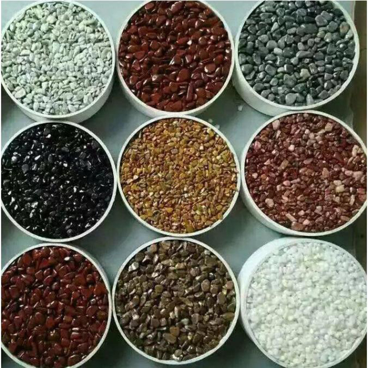 胶粘石地坪路面材料预拌好的凝胶料,客户选项用当地的石子(米石、彩石、标石),以成熟的施工技术,现场指导施工,为客户降低成本。灵活的合作方式 丰富多彩的颜色选择成就我们优良的生态透水路面铺装解决方案。胶粘石地坪路面材料由亚睿中国有限公司在国内率先研发、施工,其技术、工艺已日臻完善,它的核心技术已达到国外同类产品.广东大来荣誉出品的生态环保型胶粘石地坪,这一新型路面铺装材料,是公司引进意大利新技术,应用进口关键原材料生产的特种胶粘剂,特殊触媒等高分子材料,与水泥和其它有机矿物掺合料组成的胶凝材料,通过与相应级配的骨料现场搅拌施工而成。其性能特点是高透水性、防滑、调节地面温度且易于清洗。高冲击强和高剥离性均优于普通混凝土。