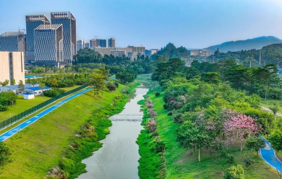 碧道功能彰显,以水兴城产城融合。黄埔区以碧道建设为引领,统筹“陆地-河岸-水中”构建生态空间廊道,建设绿色生态驳岸,打造滨水湿地,建立多元慢行系统,全面提升滨水空间人文、生态、功能品质。南岗河流域建成碧道21.6公里,达到“水清、岸绿、景美”的目标,20几公里的生态驳岸及两岸生态空间成为南岗河的一大特色,深受群众的欢迎。依托优质的水资源和健康宜居的水环境,南岗河沿岸吸引了众多高科技人才,孵化了上千家科技企业,流域内约1300多家大中型企业和黄埔实验室等8个国家级创新产业园入驻,成为广州东部最具活力的科技创新带。城市蓬勃发展、产业转型升级、人民安居乐业,是水生态环境治理成效的最好印证,也是以水为纽带,促进水、产、城融合发展的真实写照。