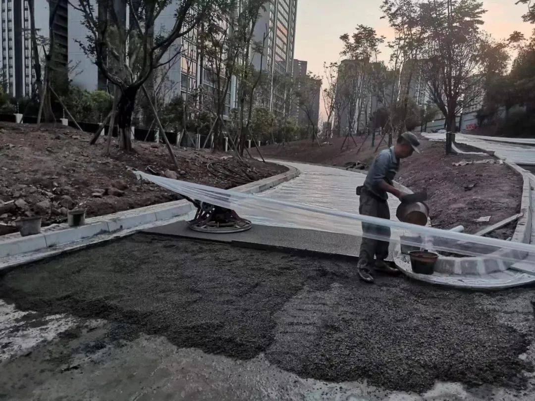 在大风、高温和干燥的天气下,透水混凝土的表面水分易蒸发,失水过快易产生表面裂缝,因此在表面处理作业完成后及时进行覆膜养护。